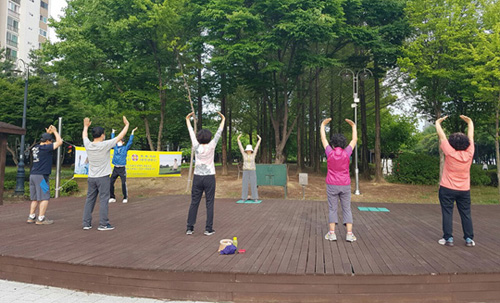 서울 강남구 양재천 영동2교 아래 야외 단체연공